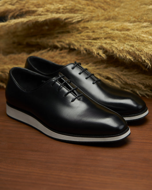 GREY DENIM ON BLACK LEATHER DOUBLE MONK